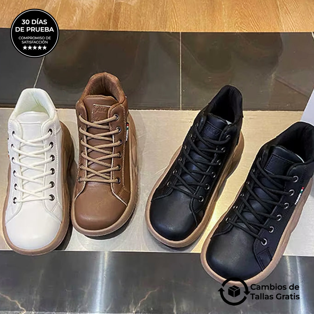 Utilizamos cuero sintético de alta calidad, suela de EVA ortopédica y plantilla de memory foam.