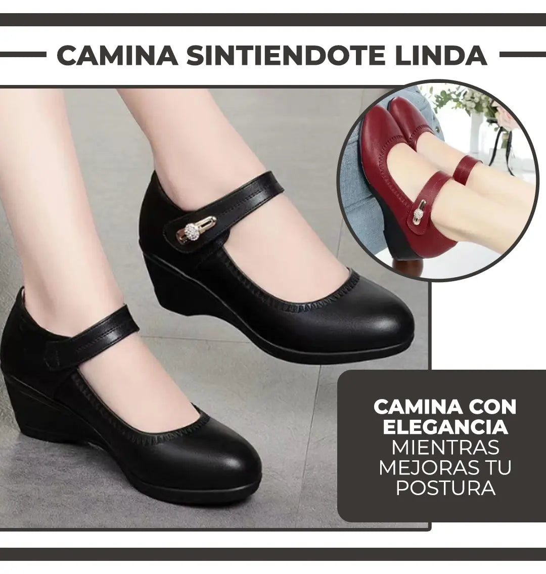 Que combinan a la perfección estilo y comodidad, ofreciéndote soporte durante todo el día sin sacrificar tu elegancia. Con ConfortElegante, no tienes que elegir entre verte bien y sentirte cómoda.